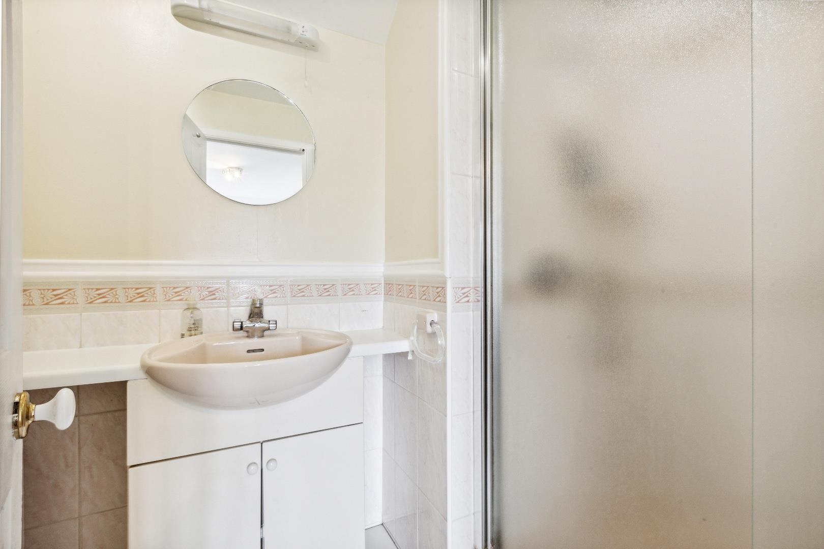 Guest bedroom with en-suite shower room and built-in wardrobe and loft storage.
