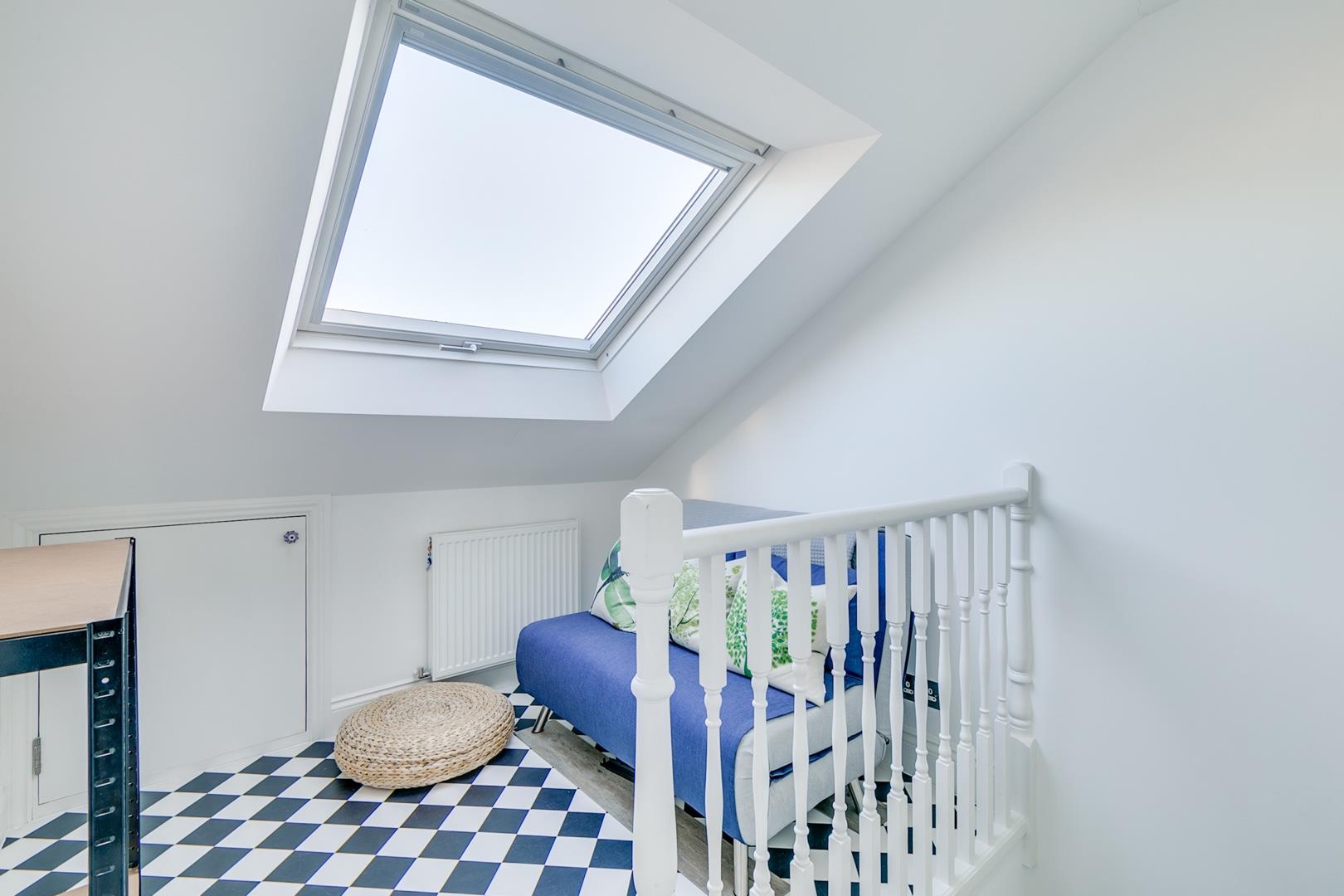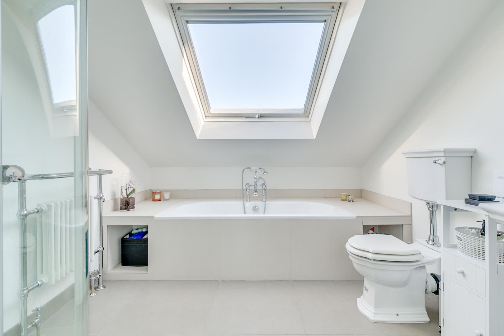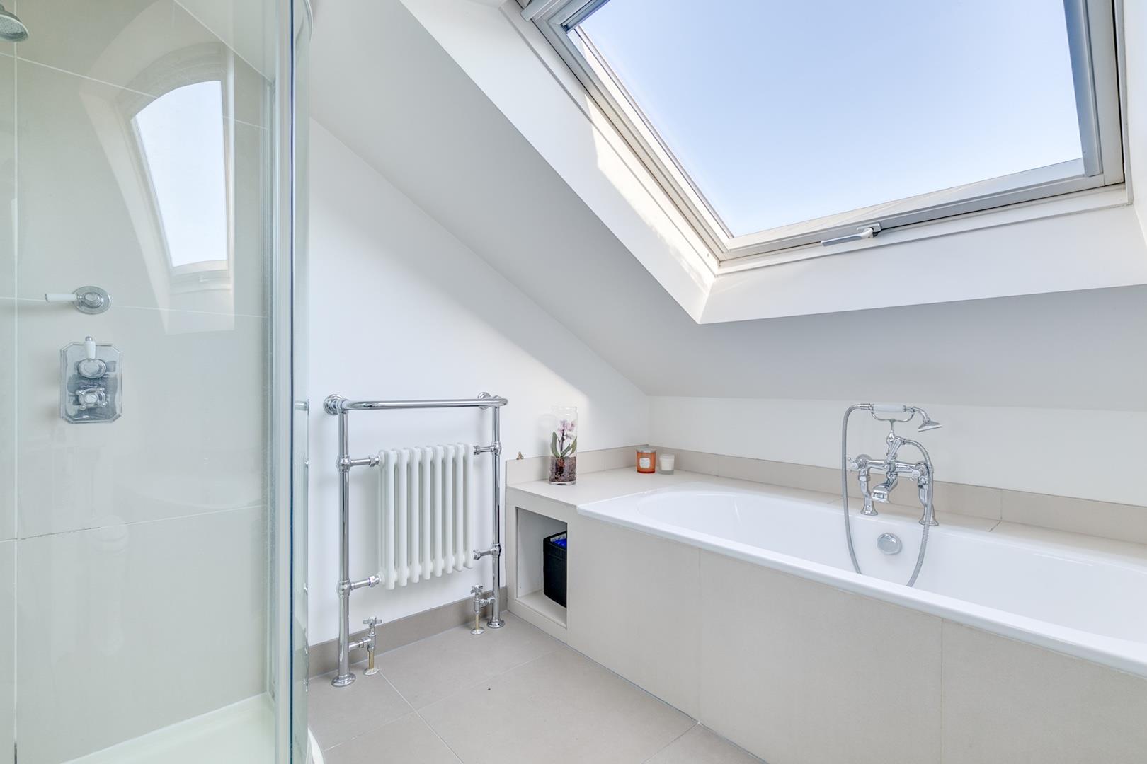 Landing with overhead Velux window that provides sufficient space for a 'work from home' desk area and extensive eaves storage, stunning 16'8 master bedroom with double depth bespoke wardrobes and well appointed luxury en-suite bathroom.