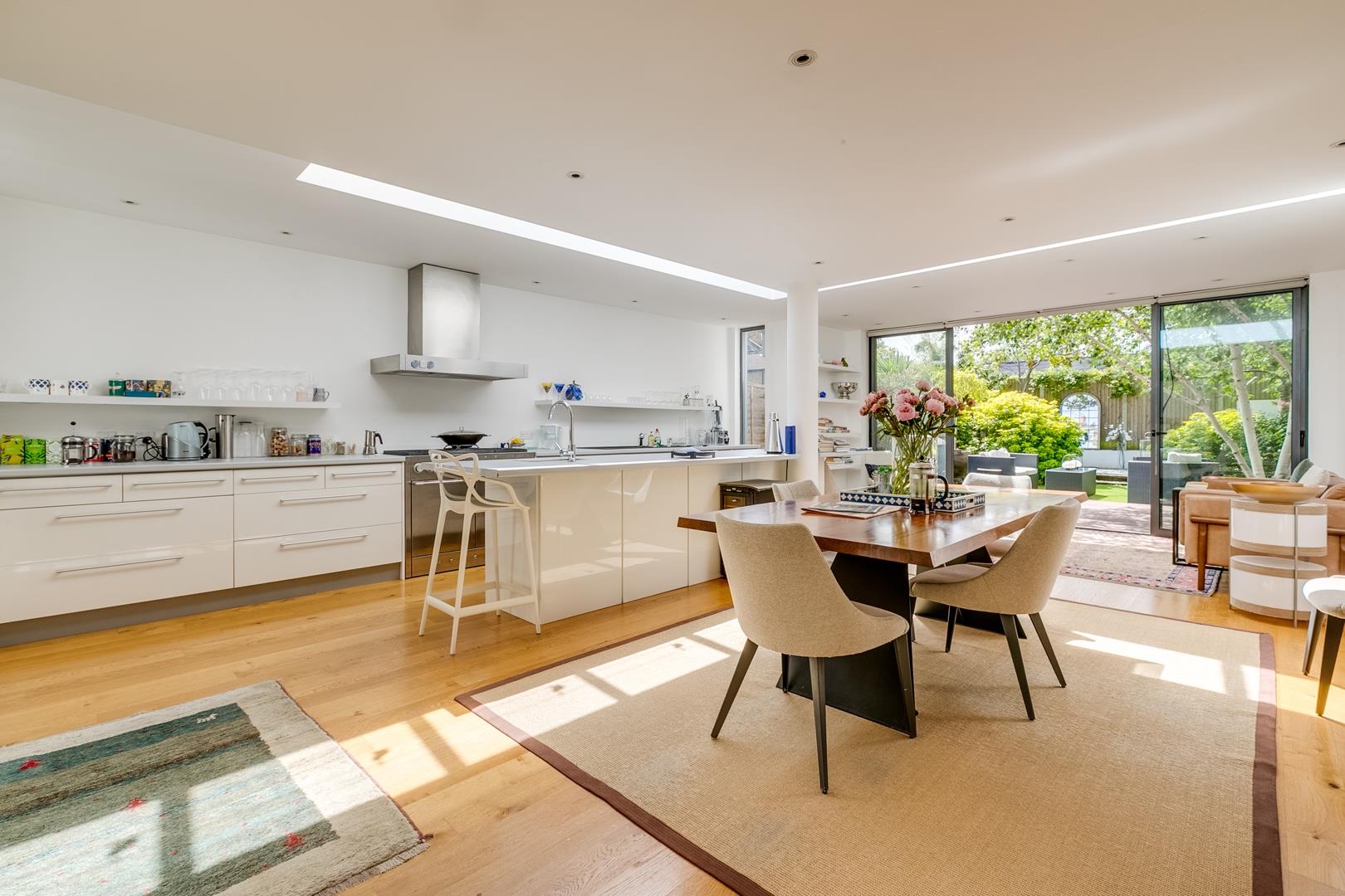 The house features a double reception, stunning kitchen/family room, off street parking, five bedrooms (formally six), four bathrooms and a 40' south facing garden that enjoys not being particularly overlooked, as the house is ideally located between gardens on Mayfield and Thornton Avenue.
