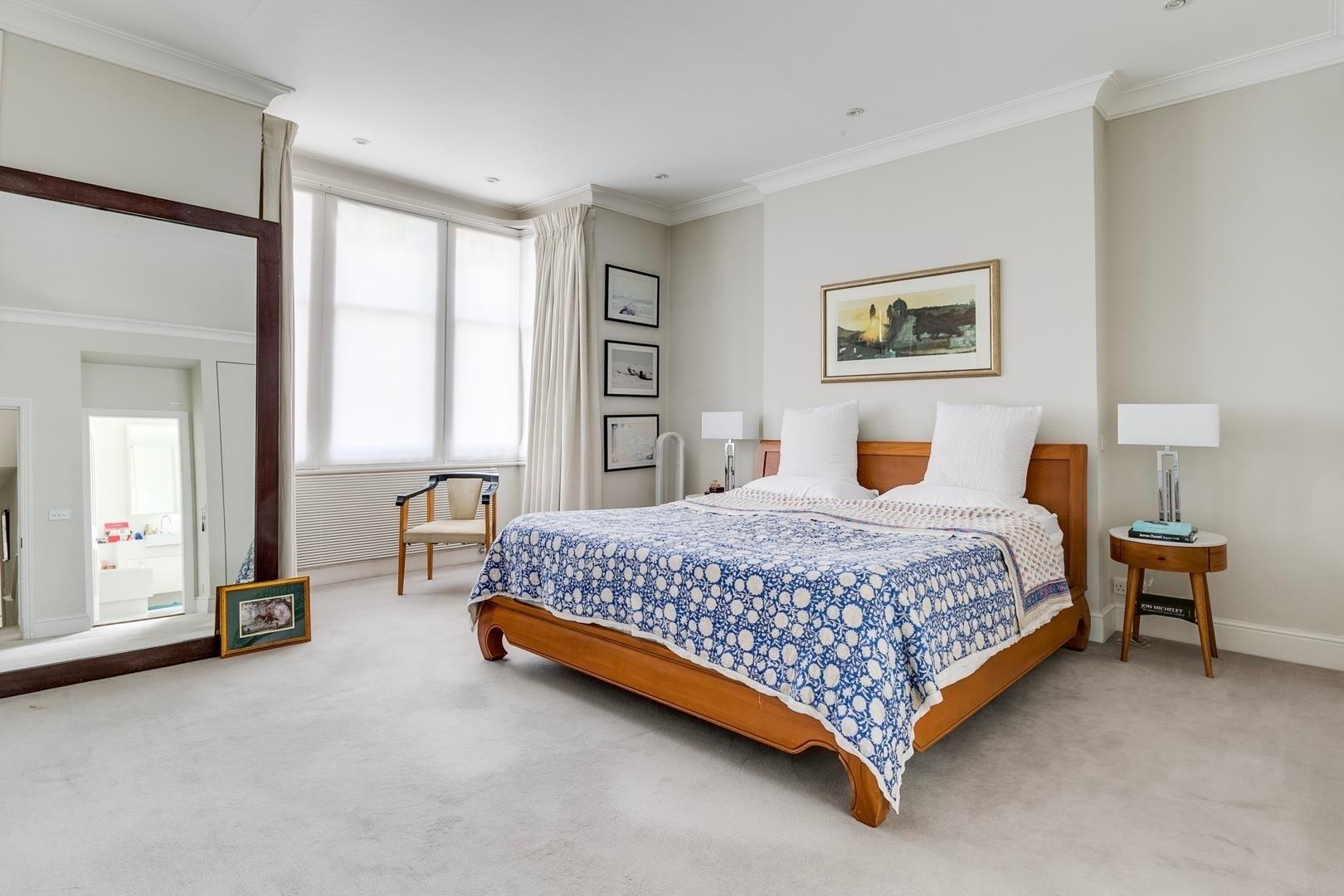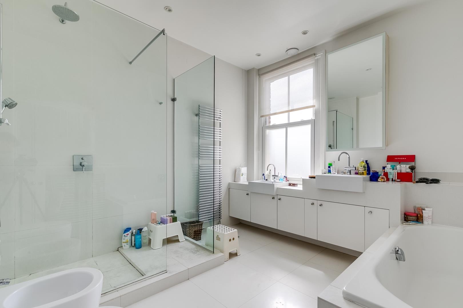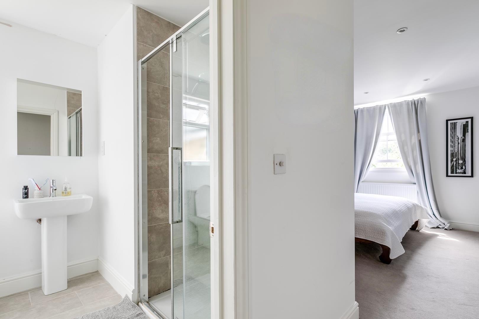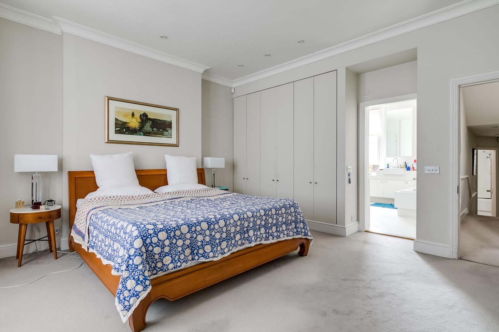 Master bedroom suite divided as spacious bedroom with extensive fitted wardrobes and elegant bay window leading to large en-suite bathroom (formally bedroom six) with separate walk-in shower and bespoke twin sink feature. The first floor also offers a double bedroom/study and family bathroom.
