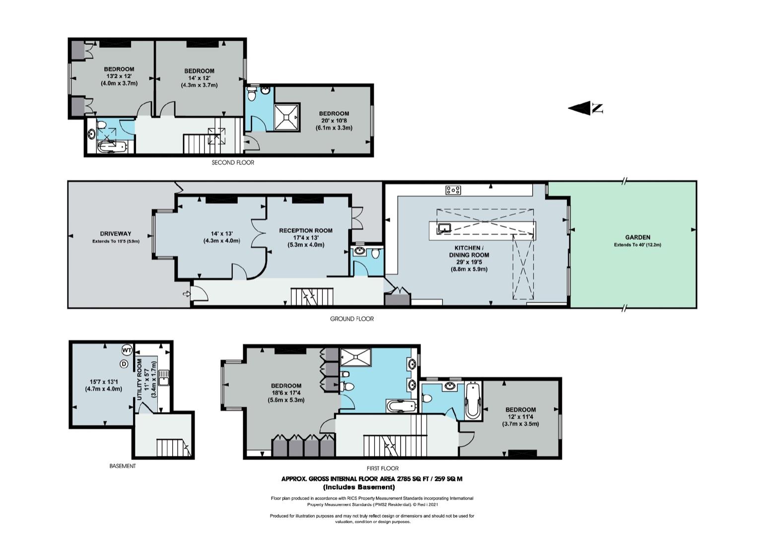 The accommodation comprises: entrance hallway, dramatic double reception room with high ceiling and feature fireplace (decorative only) divided with bi-folding doors into the library/music room, stunning kitchen/family room (extended and built into the side-return), guest cloakroom, partial basement conversion providing 'hat & coat' storage area, utility room and 13'1 general cool storage room.