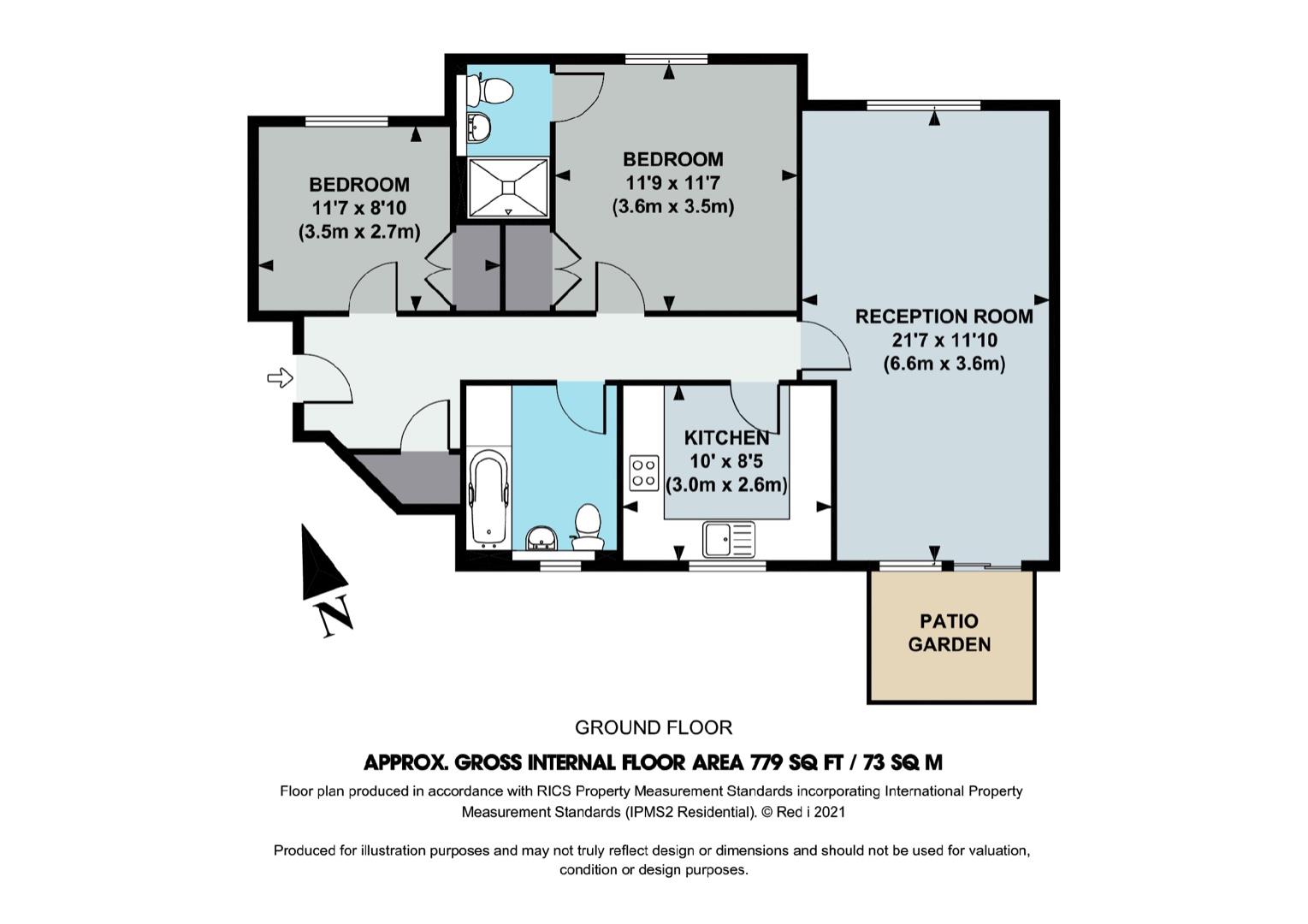 A well presented, 779 Sq Ft / 79 Sq M, two double bedroom / two bathroom, ground floor apartment that features a double aspect reception room, private patio leading to communal gardens and dedicated parking space.