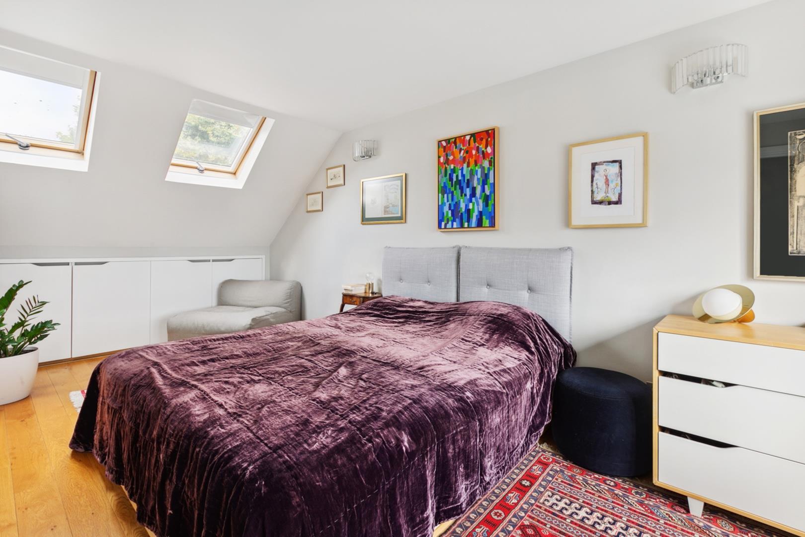 19'6 Dual aspect master bedroom suite comprising bedroom with extensive eaves storage and modern en-suite shower room.