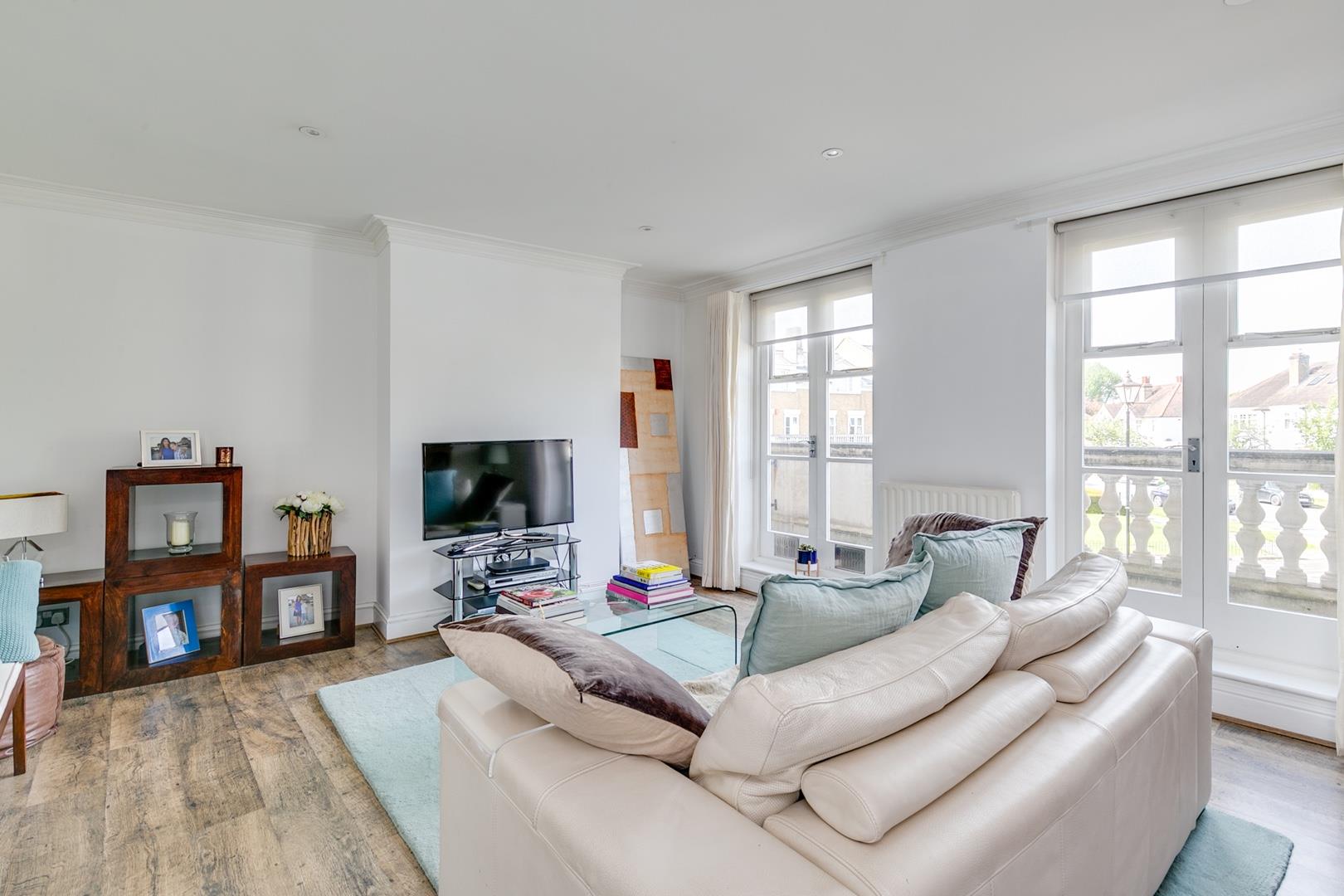Elegant 18'3 first floor reception with double doors to ornamental balcony, two double bedrooms and shower room.