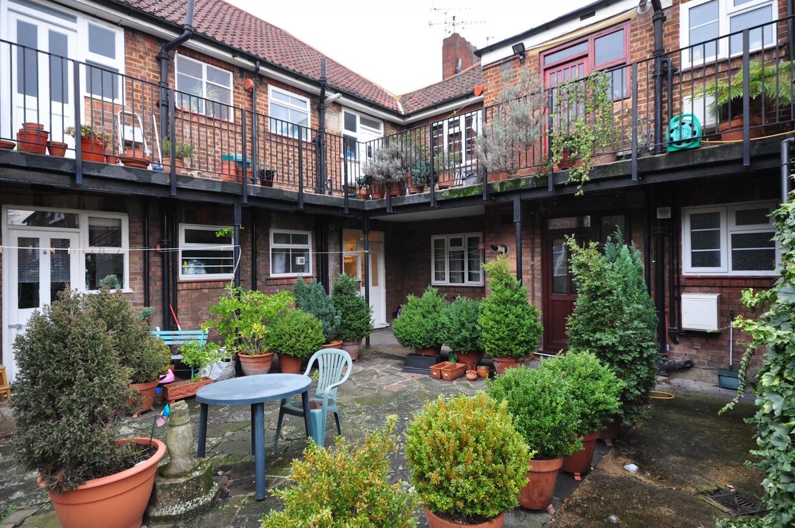 The accommodation comprises: entrance hallway, 14'5 reception room, separate kitchen with access to gardens, two double bedrooms, bathroom, external storage shed and use of communal courtyard.