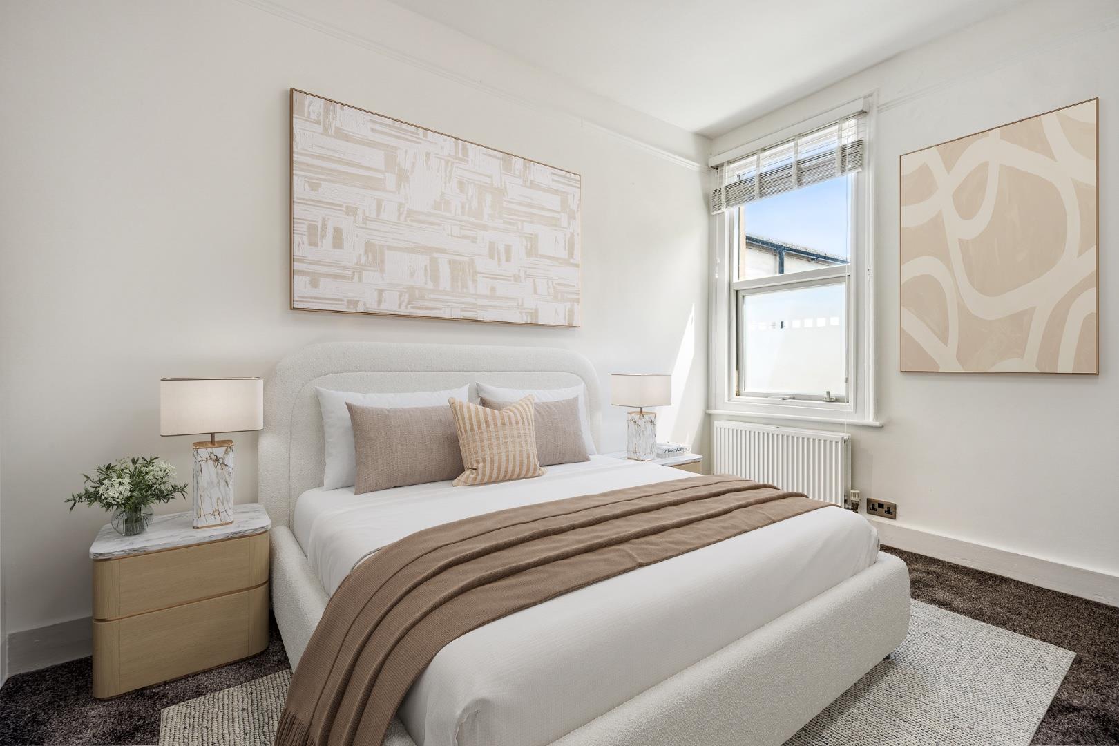 A light and airy, well presented, top floor (first) 581 Sq Ft / 54 Sq M, one bedroom unfurnished apartment that features new carpets throughout, a 15' reception room and a 11'11 kitchen/dining room.