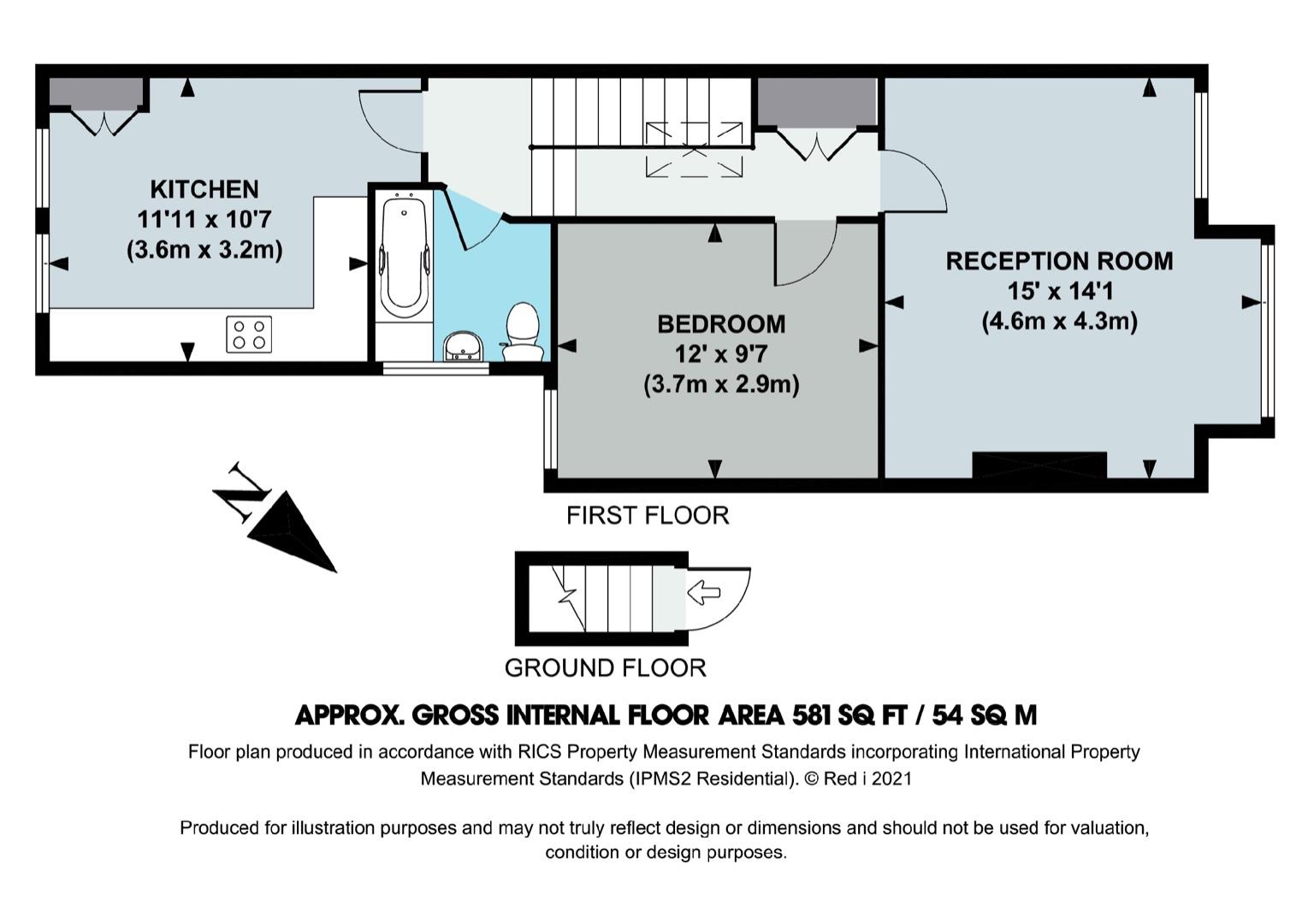 The newly decorated accommodation comprises: entrance hallway with stairs to first floor, 15' reception room with feature bay window, 11'11 kitchen/dining room with fully fitted kitchen, 12' double bedroom and bathroom.