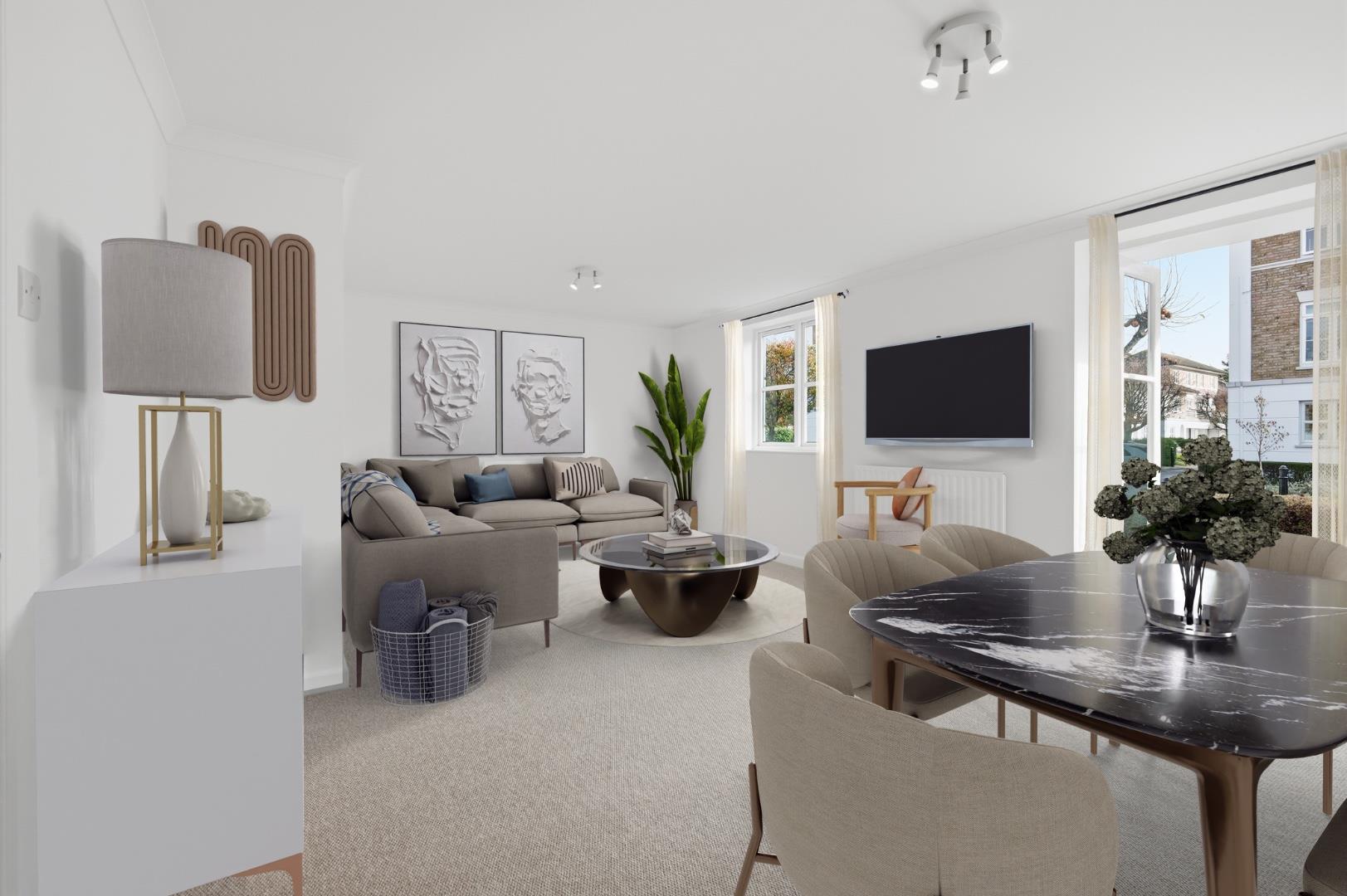 A newly refreshed, spacious two bedroom/two bathrooms, ground floor 819 Sq Ft / 76 Sq M apartment that is located within an award winning private development in Grove Park, Chiswick.