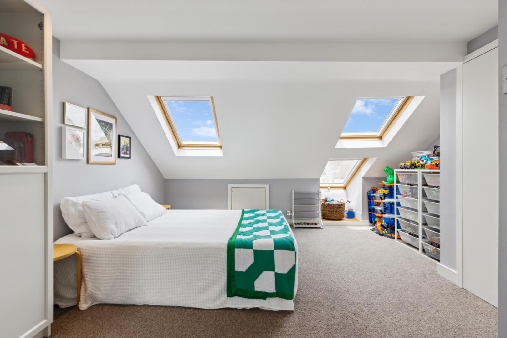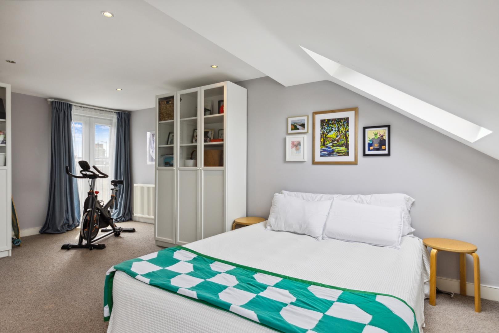 Stairs to second floor (top). 19'9 double aspect guest bedroom with built-in wardrobe and storage cupboard. The second floor also enjoys a recently refurbished guest shower room.